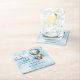 We can bearly wait blue brown ivory teddy bear square paper coaster
