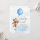 A cute, cuddly teddy bear holding onto a blue balloon. Watercolor sky background. Whimsical, handwritten style fonts. Blue and brown colour palette. Use the Edit Tool to select different fonts, change the background colour, or resize/reposition the bear or sky. © Kimbellished, LLC