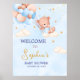 Beautiful Baby Shower Party Poster Design with Bear Thematic "We can Bearly Wait baby" is a cute design with blue colors and the illustration of a brown balloon bear. In the design you can add your party name and date. Don't think about it and it acquires this nice design now.