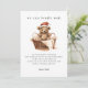 Christmas Card Pregnancy Announcement with "we can bearly wait" title and cute teddy bear in a blanket basket wearing a santa hat. Personalise with your christmas greeting, baby due date and names.