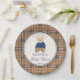 We can bearly wait brown plaid vintage baby shower monogrammed paper plates, teddy bear elegant baby shower personalised paper plates, cute teddy bear baby shower printed paper plates , simple modern baby shower personalised table decor, baby shower decor, brown plaid baby shower personalised name paper plates, classic teddy bear baby shower table decor