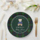 We can bearly wait navy blue emerald green plaid vintage baby shower personalised paper plates, teddy bear elegant baby shower monogrammed paper plates, cute teddy bear baby shower printed paper plates , simple modern baby shower invitation personalised name table decor, baby shower paper plates, emerald green plaid baby shower personalised party supplies, classic teddy bear baby shower paper plates