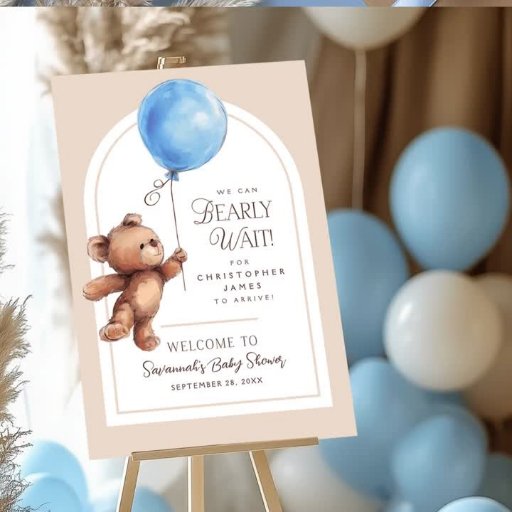 We Can Bearly Wait Elegant Brown Blue Baby ShowerDesigned by Kimberly Jones