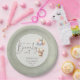 Celebrate the upcoming arrival of a little one with these adorable gender-neutral baby shower plates. Featuring a cuddly teddy bear floating with pastel balloons and the playful phrase “We can bearly wait,” this design blends cuteness with simplicity for a timeless look. The soft sage green background make it perfect for both baby boys and girls, while the clean typography keeps the layout modern and easy to read. A lovely choice for parents-to-be who want a sweet, charming, and unisex baby shower theme.