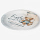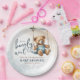 Celebrate your special day in style with this "We Can Bearly Wait" baby shower paper plate featuring a sweet watercolor teddy bear in blue denim overalls on a swing. This charming design is perfect for a baby boy or gender-neutral baby shower and adds a cohesive touch to your party table. Personalised with the baby's name and shower date, this custom plate is ideal for serving snacks, desserts, or cake. Pair it with matching napkins, invitations, and décor for a coordinated teddy bear or woodland-themed baby shower.