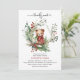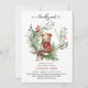 We can Bearly Wait' Winter Bear Baby Shower Invitation. Design features a cute little bear with a red and white chequered scarf, sitting in a botanical wreath of festive foliage and woodland berries.