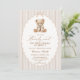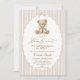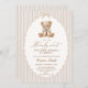 Celebrate your little one with this charming baby shower invitation template featuring a teddy bear in soft beige tones and an adorable watercolor bear. The design is perfect for a gender-neutral celebration and is perfect for a boy or girl.