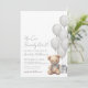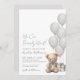 "We can BEARly wait!" sets the tone for this sweet and gender-neutral baby shower invitation, designed with soft grey tones for a minimalist and timeless feel. The text is placed on the left side in warm grey hues, using a mix of handwritten script calligraphy and classic serif fonts for an elegant and modern touch.