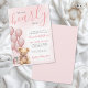 The back features a simple pink background for a clean, cohesive look. This versatile invitation works year-round, adding a touch of playful elegance to any baby shower celebration. Available as a printed invitation or a downloadable digital invite you can send via email or print locally.