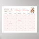 Add a playful moment to your shower with this charming calendar game sign. Featuring soft watercolor stripes, a vintage teddy bear, and elegant script, it invites guests to guess baby’s arrival date — a sweet keepsake to treasure after the big day.