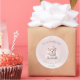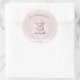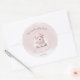We Can Bearly Wait round stickers for winter girl baby shower. The soft pink and white colours with the cutest polar baby bear girl are just so cute for a girl baby shower. The text is grey and pink, easily personalise it. - Kate Eden Art