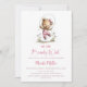 Celebrate the imminent arrival of your bundle of joy by inviting your friends and loved ones to your baby shower with this invitation featuring an adorable teddy bear wearing pink overalls playing jump rope.. The customizable text allows you to effortlessly add your name, date and time of the celebration, and the RSVP information. A variety of paper types and corner styles are available for your unique invitations, along with the option to download if you prefer a digital format.