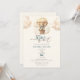 We Can Bearly Wait Teddy Bear Balloon Baby Shower Invitation. Get ready for a sky-high celebration with this charming baby shower invitation! A lovable boho teddy bear embarks on a journey in a beautifully illustrated hot air balloon, set against a backdrop of fluffy clouds and scattered stars. The artistic watercolor effect adds a touch of vintage rustic charm and a soft, dreamy aesthetic, ideal for a boy baby shower. This invitation sets a playful and whimsical tone, inviting guests to share in the joy of a new chapter .It's the perfect way to invite loved ones to celebrate this special journey. Add custom details on back like a custom QR code for registry details.