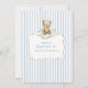 Personalize this adorable neutral light dusty blue, beige, and white "We Can Bearly Wait!" teddy bear theme baby boy shower invitation featuring a sweet watercolor teddy bear holding checkerboard pattern balloons and a hand drawn beige bow frame over blue ticking pinstripes on the front and back sides. It's the cutest way to invite guests to shower the new mommy-to-be with love! Easily add your wording to make it uniquely yours, and order prints + envelopes, or download the printable digital file and print at home! Find the matching diaper raffle card, books for baby card, envelope liner, decor & stationery in the full collection above ♥ Custom design requests, colors, product collection additions, and template questions are always welcome - click the "message" button or email direct (with a quick response time!): contact@figandlilyco.com. Design is lovingly created by Fig and Lily Studios - sending blessings and thanks for being here with us ♥