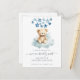 An adorable teddy bear sitting on a cloud with stars above, with the expression: "we can bearly wait". A trendy cute style for your big announcement. Modern serif type contrasted with script typography. An economical budget friendly postcard version.
