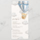 This menu features a soft hot air balloon teddy bear design and modern fonts. The script heading is an image that cannot be edited. All of the other text is fully editable. For more advanced customization of this design, simply select the "Customize It" button above.