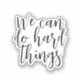 "We can do hard things" inspirational quote designed with a simple black script text, with a white background. Trendy and modern, yet also minimalistic. A great daily reminder that you got this!
