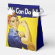 What Patriotic 40s collection would be complete without Rosie the Riveter? Here is a tent style with white ribbon favour box with an image, on both sides, of Rosie, a cultural icon of the United States, representing the American women who worked in factories during World War II, many of whom worked in the manufacturing plants that produced munitions and war supplies. These women sometimes took entirely new jobs replacing the male workers who were in the military. Rosie the Riveter is commonly used as symbol of feminism and women's economic power. See the entire Patriotic 40s Favour Box collection in the PARTY FAVORS section.