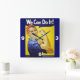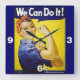 Here is a 10.75" x 10.75" acrylic wall clock with an image of Rosie, a cultural icon of the United States, representing the American women who worked in factories during World War II, many of whom worked in the manufacturing plants that produced munitions and war supplies.