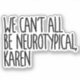 The design of this sticker is intentionally straightforward yet impactful. It features the phrase "We Can't All Be Neurotypical Karen" in a bold black font against a clean background. The choice of font and colour is deliberate; it's meant to capture the essence of sarcasm and humour, which are often appreciated and used as coping mechanisms by many neurodiverse individuals.