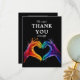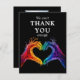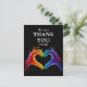 Introducing the "Thank You" Card from the "Heart of Pride" collection, crafted to convey heartfelt gratitude with a modern and inclusive touch. On the front of the card, the top section features the bold and inviting caption "We Can't Thank You Enough" in elegant white script, immediately capturing attention and expressing sincere appreciation. Below this, the iconic artwork from the "Heart of Pride" collection is showcased: two hands forming a heart gesture in radiant LGBTQ+ colours against a profound black backdrop. This vibrant design symbolises the deep love and connection celebrated on your special day.