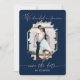 This elegant and simple photo wedding engagement save the date is perfect for any modern couple. It features a navy blue brushstroke halo vignette on top of a photo of the couple outlined in a faux printed gold foil diamond border with white handwritten signature script typography. It's minimal, chic, pretty, and beautiful to announce your special day. On the back features a simplistic text setup with the phrase, "The future Mr. and Mrs."