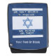A hand-painted, blue-on-white, sign posted outside a shop in the Israeli town of Rosh Pina. The sign has English-language text reading, WE DON'T BELIEVE IN MIRACLES, WE DEPEND ON THEM" on a representation of Israel's flag. Add your own additional text.
