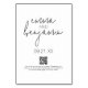 We Do, We Drink, We Eat, We Dance - A modern and light-hearted design for a wedding. Personalise these wedding table numbers with the bride and groom name plus the wedding date. The simple black and white design coordinates with many wedding themes. A minimal look in black and white with a thin, sans serif font plus a wispy script font as an accent. A modern design for a wedding or an anniversary party.