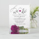 This beautiful wedding invitation is romantic, playful, and stylish. It features a fun title with a cute heart and modern script lettering reading "we do" at the top, with all the details below. At the bottom is a gorgeous single long-stemmed magenta plum, cassis purple, or berry coloured rose lying on its side reflecting or mirrored in a pool of water. The back is a marbled magenta purple colour with a bouquet of roses tied with a white satin bow. There is a heading reading "the details" with room for a short note and a customisable QR Code to direct your guests to a website with more information and/or to RSVP online. Classy, elegant and sophisticated, this invitation is the perfect way to invite your friends and family to share in your joy on your special day!