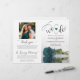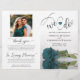 This beautiful wedding program is both modern and elegant. The DIY folded design features modern script lettering on the front reading "we do" with the names of the couple and wedding date/location. There is a photo of a beautiful long-stemmed teal or dark turquoise coloured rose reflecting in a pool of water with waves and ripples. The inside has the same flower as a watermark background with space for the ceremony and bridal party details. The back has your photo, along with space for a customisable thank you note, and a memorial note to recognise lost loved ones. Sophisticated, stylish, and chic, these programs will add class and style to your wedding celebration.