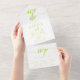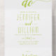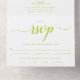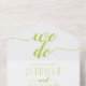 "We do" elegant lime green cursive script handwritten style typography white wedding all in one invitation.