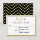 This simple and elegant wedding RSVP response card is designed with a calligraphy font in the "RSVP" heading and bordered with gold and black edging for a clean modern appeal. The reverse side of the response card features a modern black and gold chevron pattern. This response card is a part of the "We Do Modern Chic Wedding Collection" and is ready to personalise with your wedding details. Simply select the "Customise It" button and input your details in the template on the right. You may change fonts, font colours, and sizes as well as rearrange the text layout to suit your needs and preferences.