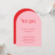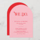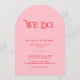 This modern retro pink and red we do wedding invitation features a bold and stylish arch layout. The soft pink background is paired with rich red typography to create a clean retro modern look. The large “We Do” headline adds a confident and contemporary feel while keeping the design elegant and simple.