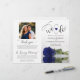 This beautiful wedding program is both modern and elegant. The DIY folded design features modern script lettering on the front reading "we do" with the names of the couple and wedding date/location. There is a photo of a beautiful long-stemmed navy blue colored rose reflecting in a pool of water with waves and ripples. The inside has the same flower as a watermark background with space for the ceremony and bridal party details. The back has your photo, along with space for a customizable thank you note, and a memorial note to recognize lost loved ones. Sophisticated, stylish, and chic, these programs will add class and style to your wedding celebration.