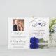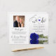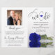 This beautiful wedding program is both modern and elegant. The DIY folded design features modern script lettering on the front reading "we do" with the names of the couple and wedding date/location. There is a photo of a beautiful long-stemmed royal blue or cobalt coloured rose reflecting in a pool of water with waves and ripples. The inside has the same flower as a watermark background with space for the ceremony and bridal party details. The back has your photo, along with space for a customisable thank you note, and a memorial note to recognise lost loved ones. Sophisticated, stylish, and chic, these programs will add class and style to your wedding celebration.