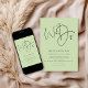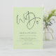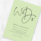 We Do Script QR Code Lime Cream Green Wedding. A simple yet elegant typography design. Stylish set script We Do takes centre stage at the top.The rest of the text you can easily personalise. Text and background colours can be changed if you wish to better suit your wedding theme via the customise further option. A QR code is on the back for the convenience of your guests to reply online via your website. Your QR code will automatically be generated to replace the sample code when you ente your website URL into the template.