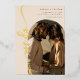 This modern minimalist save the date card features a sleek arch-shaped photo frame and elegant foil accents in your choice of gold, rose gold or silver. The clean design allows your photo to take centre stage, while the classy script and real foil add a touch of sophistication. The beige background colour can be changed to match your wedding's colour scheme. Perfect for everyone looking for a chic and stylish save the date card.