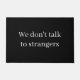 This is an Outdoor Mat that says We don’t talk to strangers. The background is black with white writing.