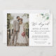 We eloped announcement to surprise friends and family with the news of your marriage and informing them of your reception details to come. Just married announcement features "we eloped" in a fun script and a greenery branch of eucalyptus with gold elements. Customise with your photo.