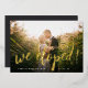Our chic and modern wedding announcements are the perfect way to let friends and family know about your elopement, secret ceremony or private wedding. "We Eloped!" is overlaid in gold foil handwritten style brush lettering on your favourite full bleed horizontal or landscape orientated photo. Personalise with your names and wedding dates as well as a personal message on the reverse side.