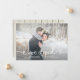 This elegant, rustic wedding photo elopement announcement features white script typography, and a white wood look background on the reverse.