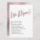 For the header of these bold cards, I've used a casual, modern, handwritten font to create a graphic typography overlay reading "We Eloped!". This image was embellished with a smooth faux-metallic rose gold foil effect for a celebratory vibe. Fill in the template blanks with your details to personalise the design. All layers were left unlocked so you can also click to further customise and re-position text or even change sizes or fonts. The background was covered in a repeating, Moroccan-inspired, retro pattern that has been embellished with the same rose gold effect. Please do not hesitate to reach out for assistance with customisation.