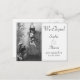 A postcard with an announcement that the couple have eloped to be wed. A vintage themed card where a girl jumps out of a window into the arms of her future husband ready to catch her at the front door of her father's house. An appropriate card for those couples where eloping is the only option available or where the couple have, for various reasons, chosen this approach over a more traditional wedding ceremony. Fully personalise the card to announce the Bride and Groom's name, and date of wedding (which may be in the recent past if the ceremony took place while the postcard was in the mail). Additional information such as expression of thanks, explanations etc, can be added on the back of the postcard.