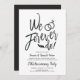 A fun and unique script lettered invitation tailored specifically to an Anniversary party or wedding vow renewal. It features the words "We Forever do" with wedding rings resting above it. Underneath this Is space for your unique party or event details.