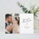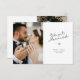 elegant we got married wedding announcement design with lovely black lettering. The bride and groom's image and back color and text can be personalized.