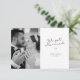 elegant we got married Dark Grey Brown script Announcement design with lovely black lettering. The bride and groom's image and back color and text can be personalized.