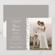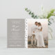 We Got Married Glitter Heart Photo Elopement Grey White Wedding Announcement features your personalised photo and romantic silver glitter love hearts on a grey and white background with your wedding announcement information to the left. Personalise by editing the text in the text box provided.