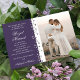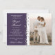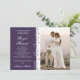We Got Married Glitter Heart Photo Elopement Purple White Wedding Announcement features your personalised photo and romantic silver glitter love hearts on a purple and white background with your wedding announcement information to the left. Personalise by editing the text in the text box provided.
