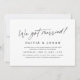 This modern yet elegant wedding elopement party invitation features a script greeting that says "We got married!" and classic typography. All colours in this design are customisable. You can further customise this design by adding a photo and/or additional text to the back side.