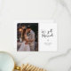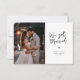elegant we got married wedding photo announcement design with lovely black lettering. The bride and groom's image and back colour and text can be personalised.